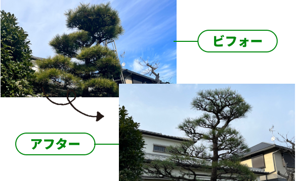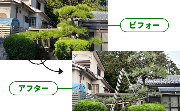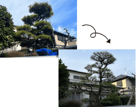 うちには高い松の木があり他の植木屋さんには断られたりしてたのですが、一樹一会で見積もりを取って一度お帰りいただきましが、変なお電話もなく、こちらから再度質問すると丁寧にお答えいただきました。 最終的に対応と価格が良かったコチラに決めましたが、依頼してよかったと思います。